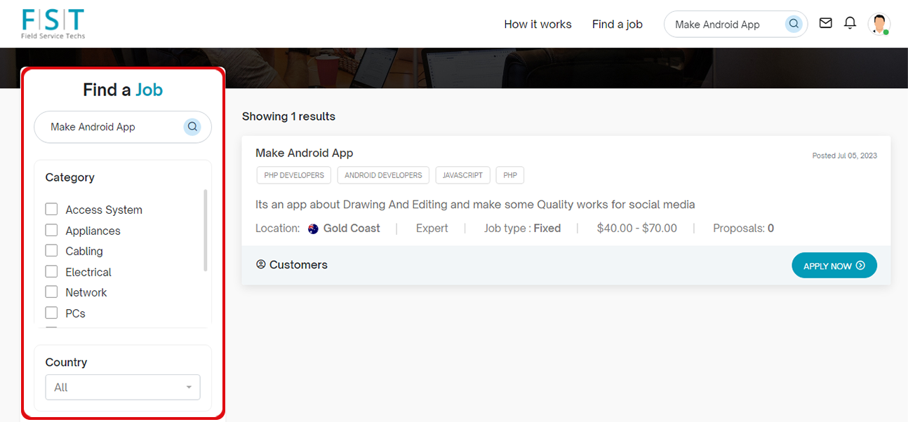 Category: You can filter your job search result, through the category option. Here, you can find multiple job categories, Explore the options and click on the drop down menu that suits you.