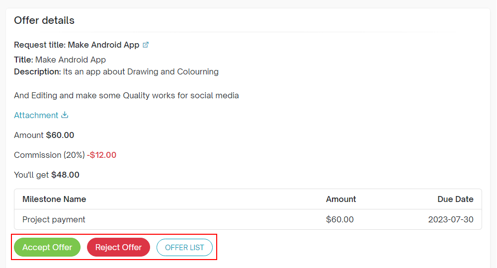 After you place your bid, the customer will review your proposal. If he/she finds you as the perfect match for the job, he will send you an offer.
